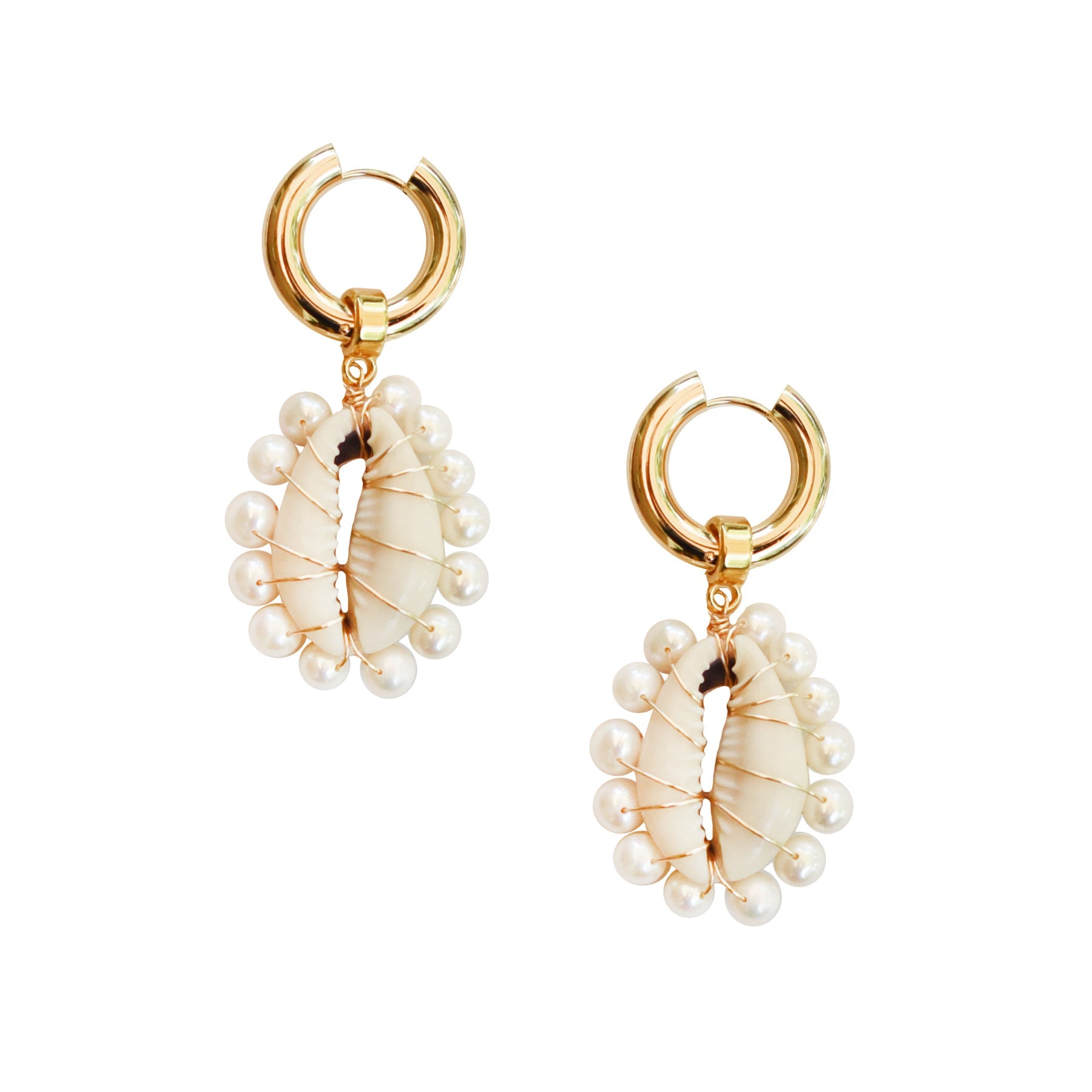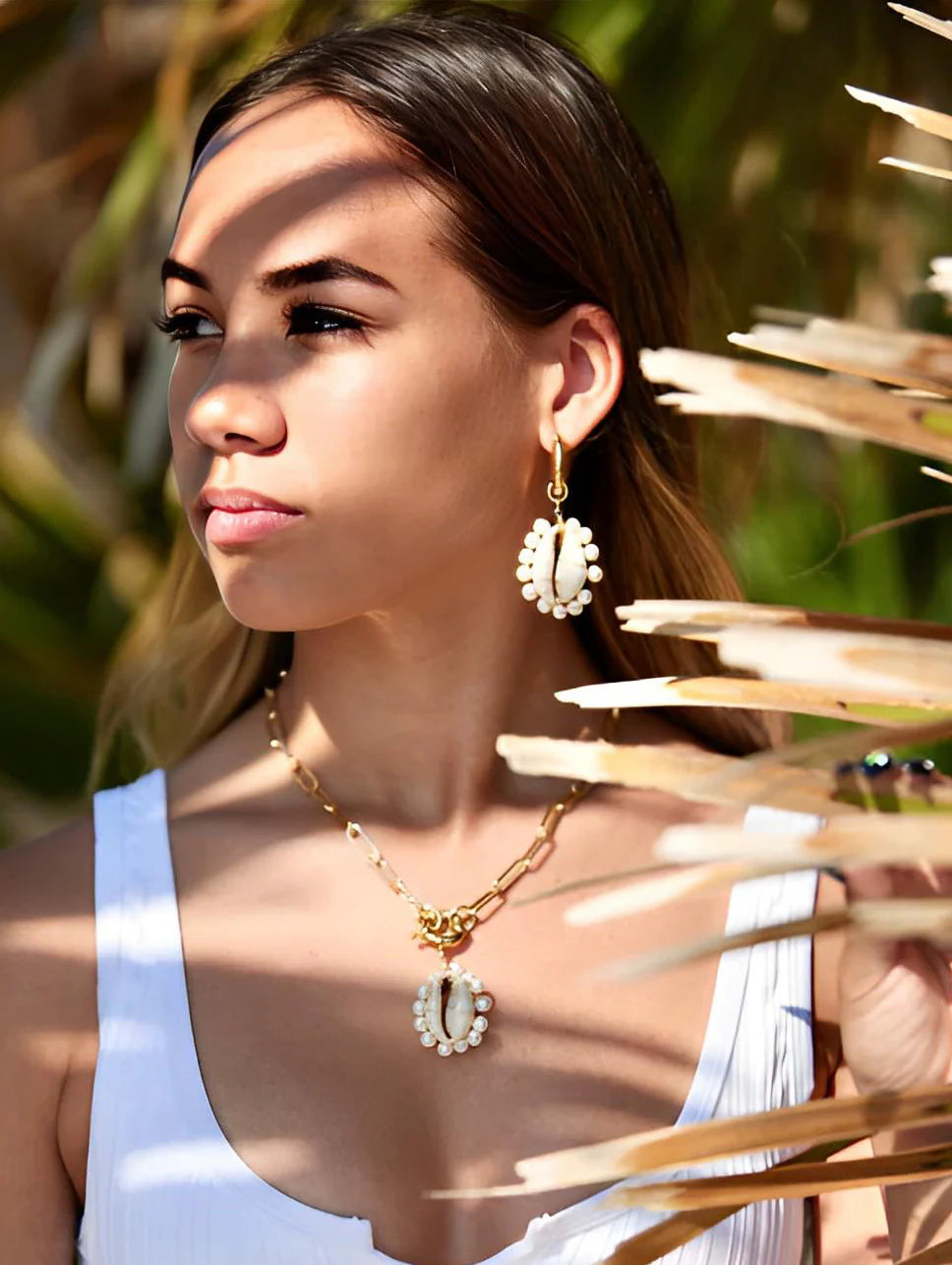 · 14k gold plated brass, freshwater pearl, natural shell.