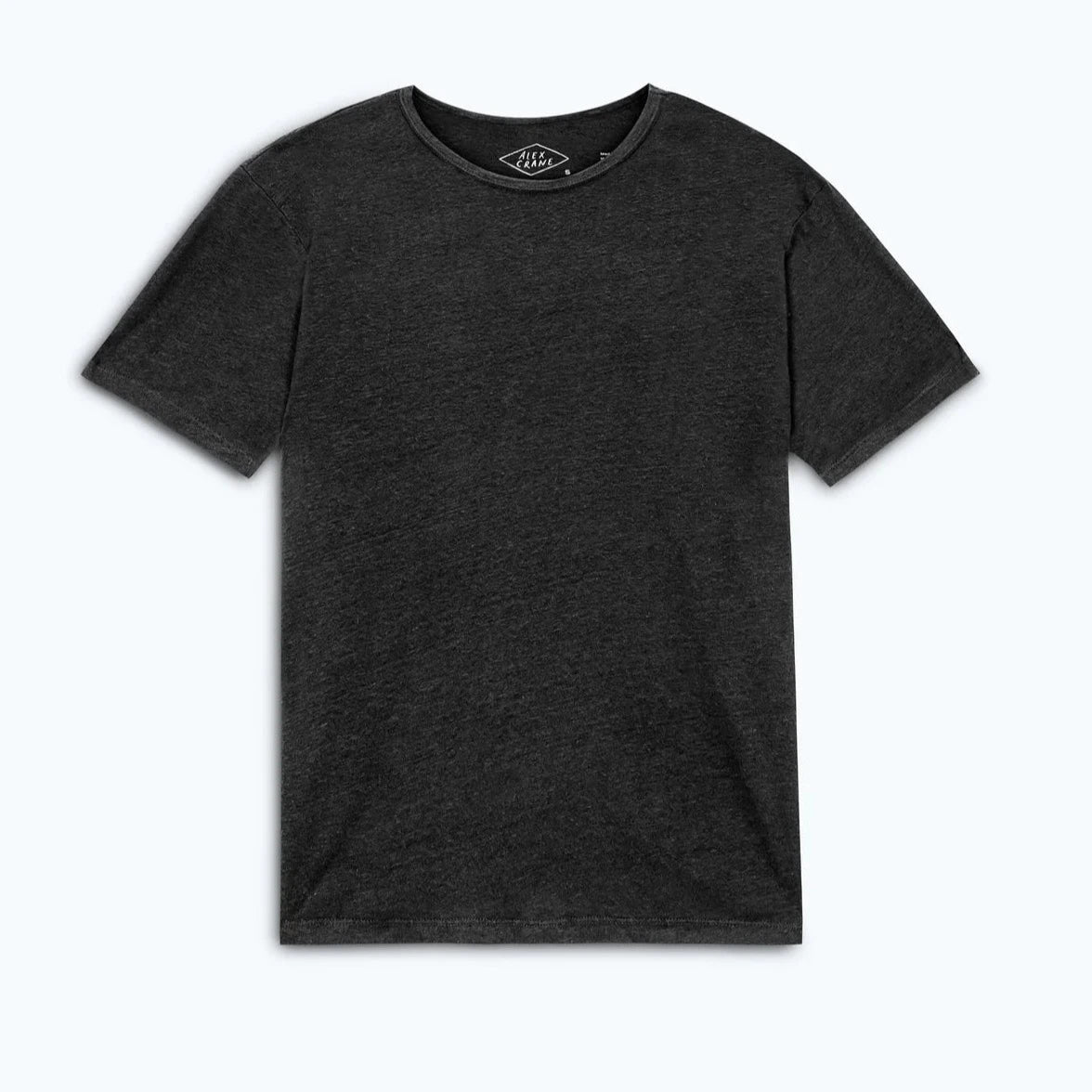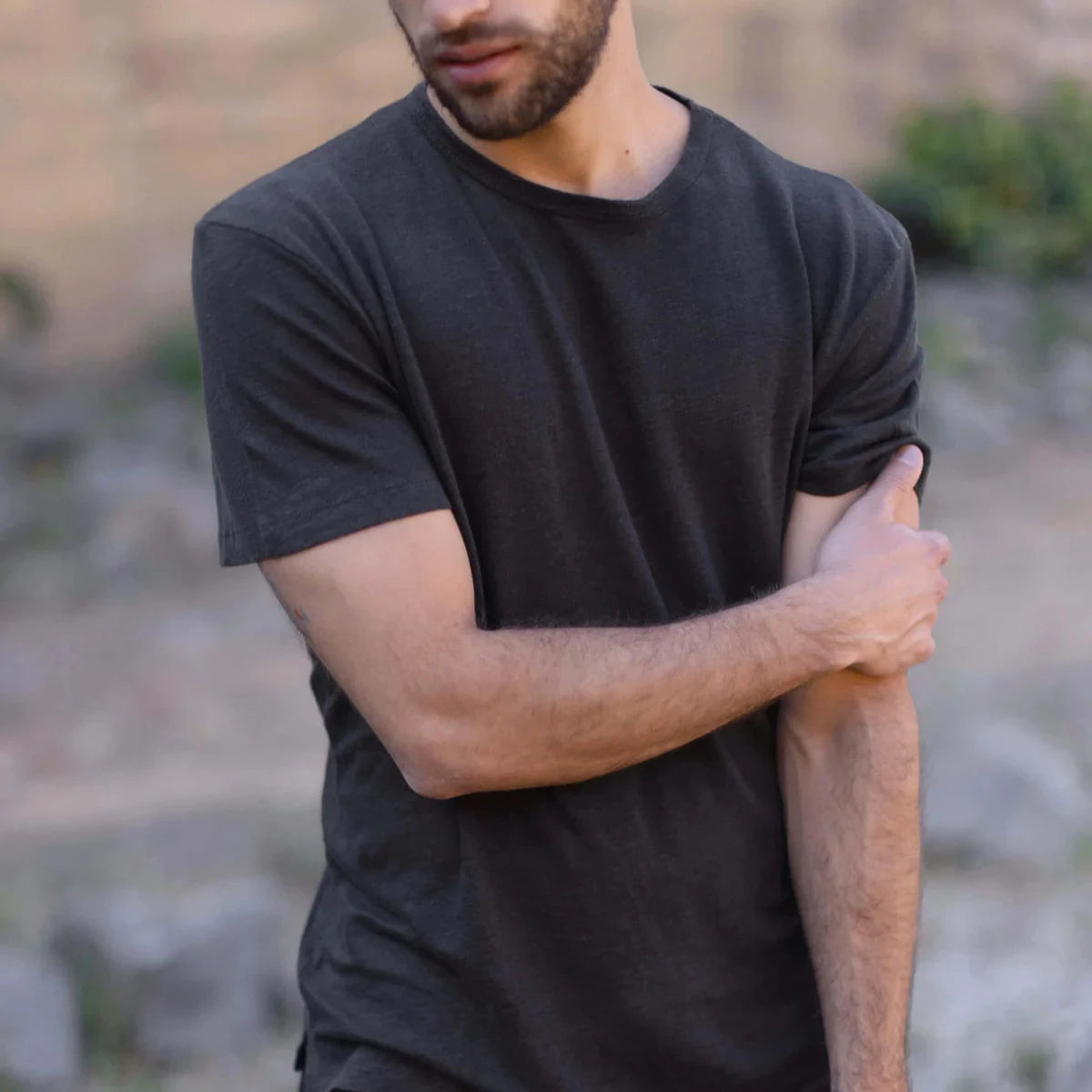 A black linen t-shirt made with sustainably grown French linen, knit in Portugal and washed with biodegradable softeners.