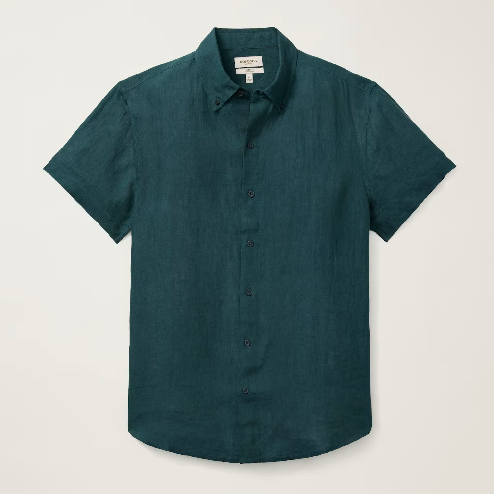 Bonobos Riviera Linen Shirt - Dark Green