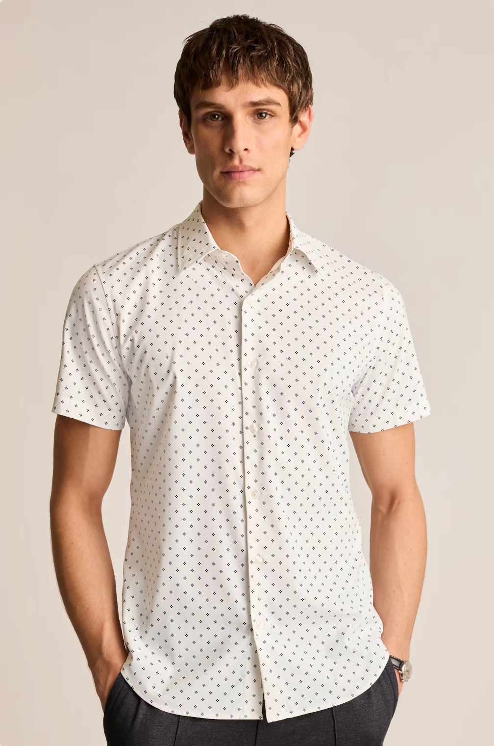 Great for warmer weather. Wicks away sweat, dries quickly & resists wrinkles.