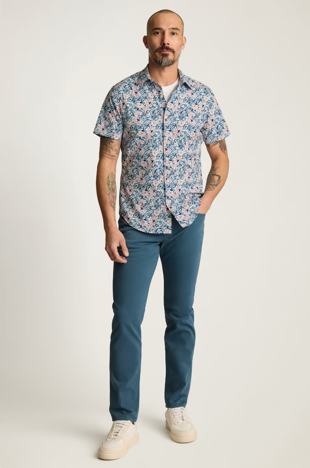 Great for warmer weather. Wicks away sweat, dries quickly & resists wrinkles.