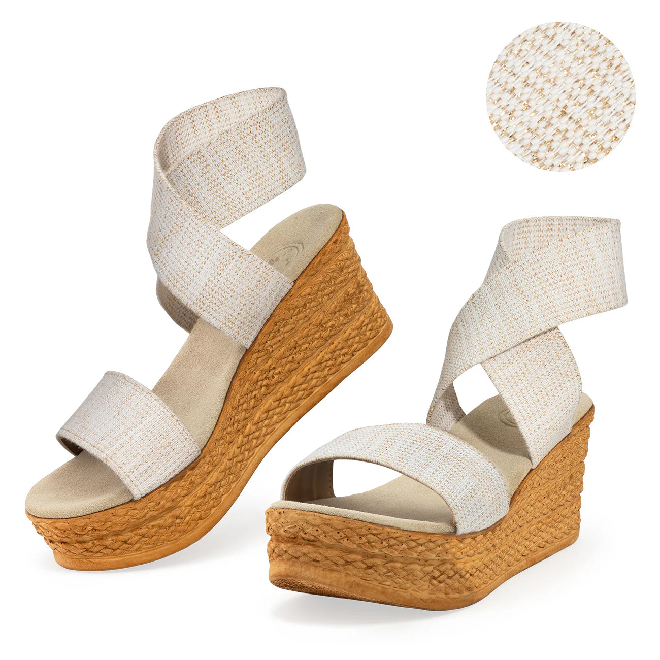 Bring a beach town vibe to your look with our Bermuda platform wedges, featuring a faux-jute platform and a chic, stretchy, wrap around ankle strap. Pack these amazing sandals in your suitcase for warm-weather getaways, or rock vacation style around your hometown!