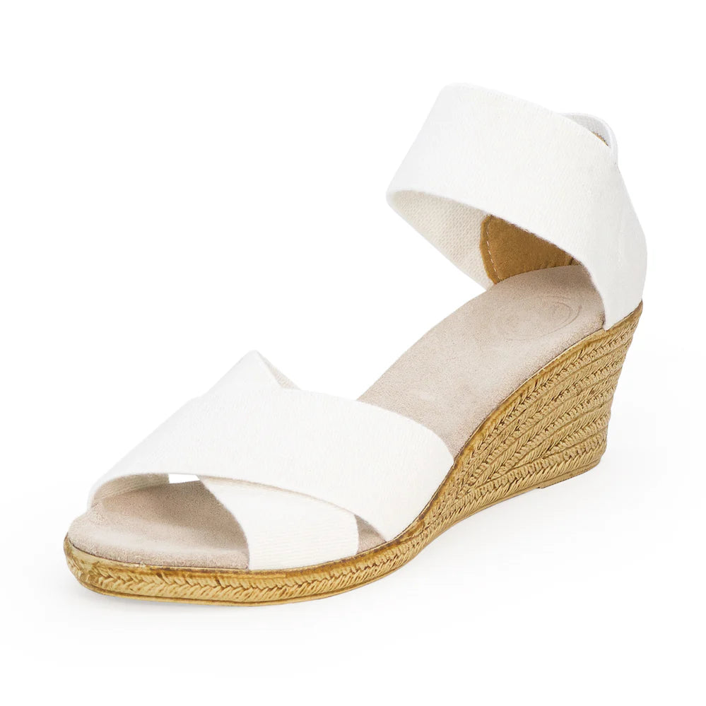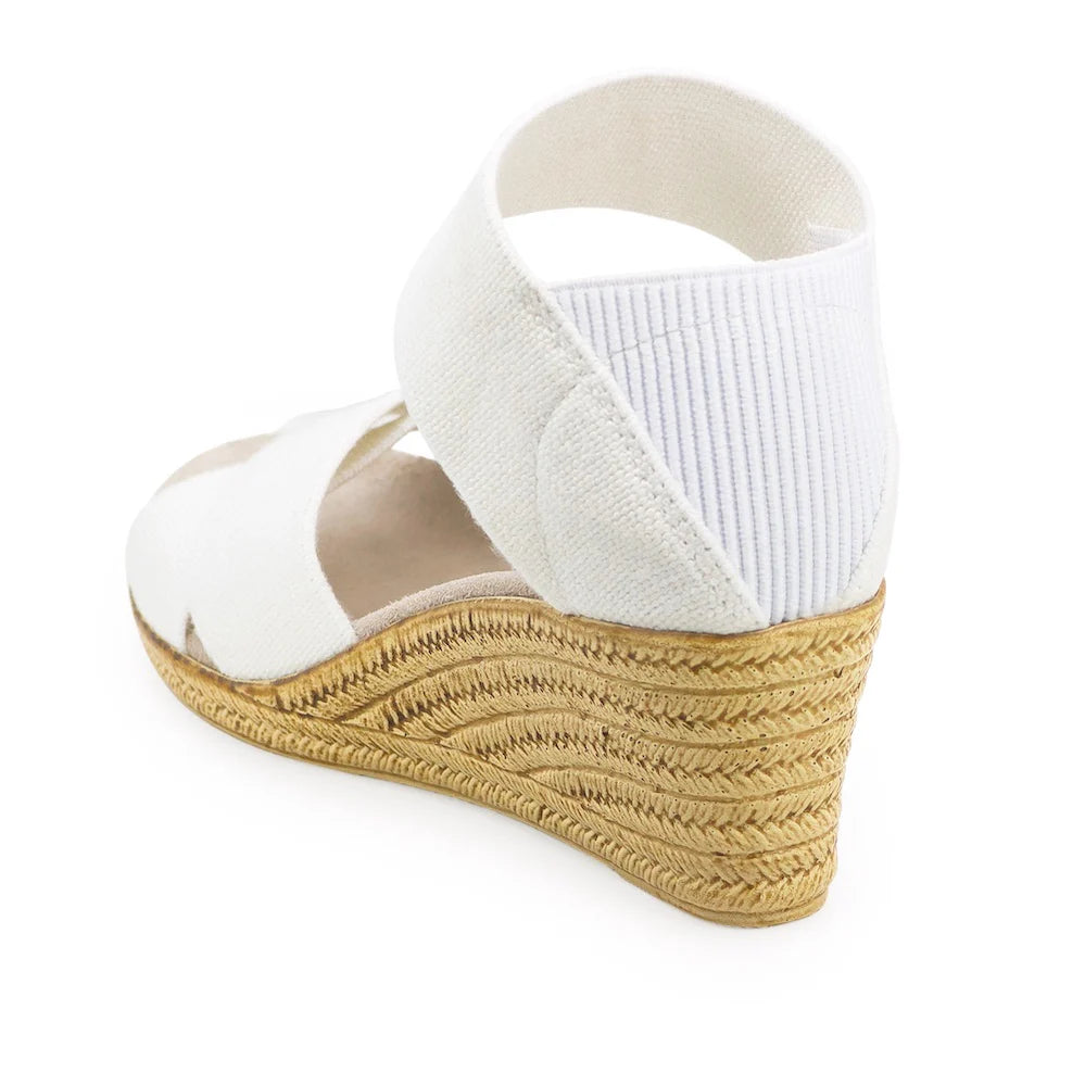 - Stretch upper, crisscross strap, wide ankle strap, faux espadrille bottom