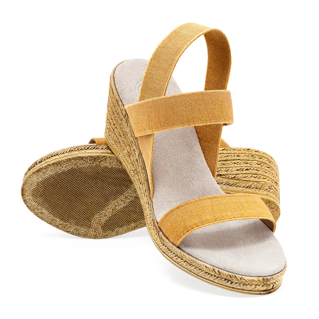 - 3 1/4" faux espadrille wedge for lightweight comfort and style