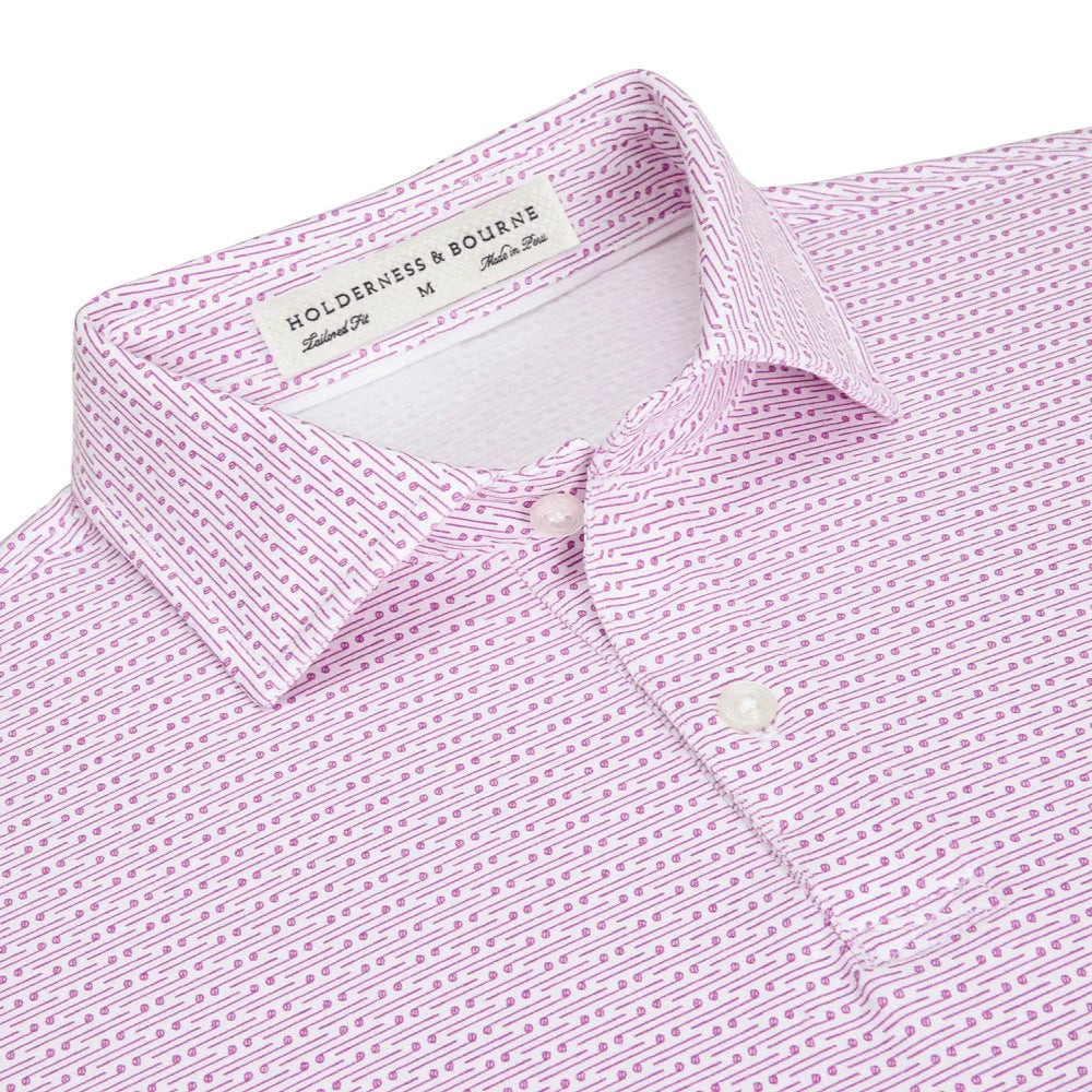 Vintage golf vibes never go out of style. The Hall continues our tradition of interesting yet understated print designs, featuring a repeating club pattern overlaid on our white Peruvian pima cotton and elastane fabric. This breathable premium jersey fabric is ready for the course, with UPF 50+ sun protection and superior softness.