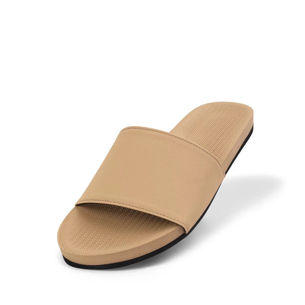 Natural rubber and vegan uppers. Thoughtful ingredients combined with signature recycled tire sole technology make the ESSNTLS Slide a winning combo.