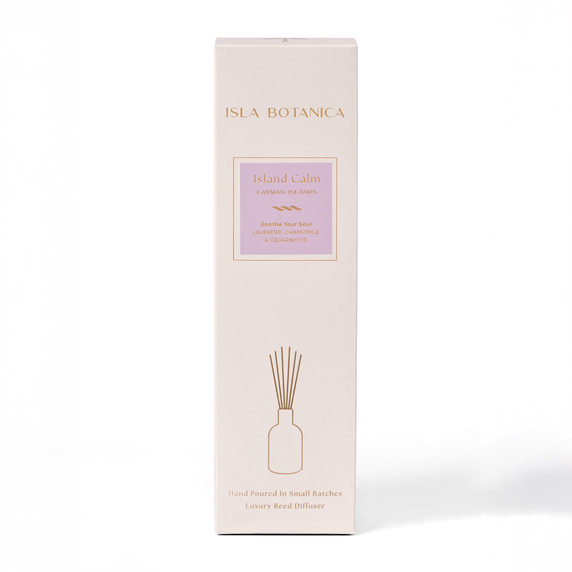 Crafted as a luxury reed diffuser, Island Calm is designed to bring a natural, relaxing presence into your space every day. Its non-toxic formulation slowly diffuses through the reeds, surrounding your home with the serene essence of island living.