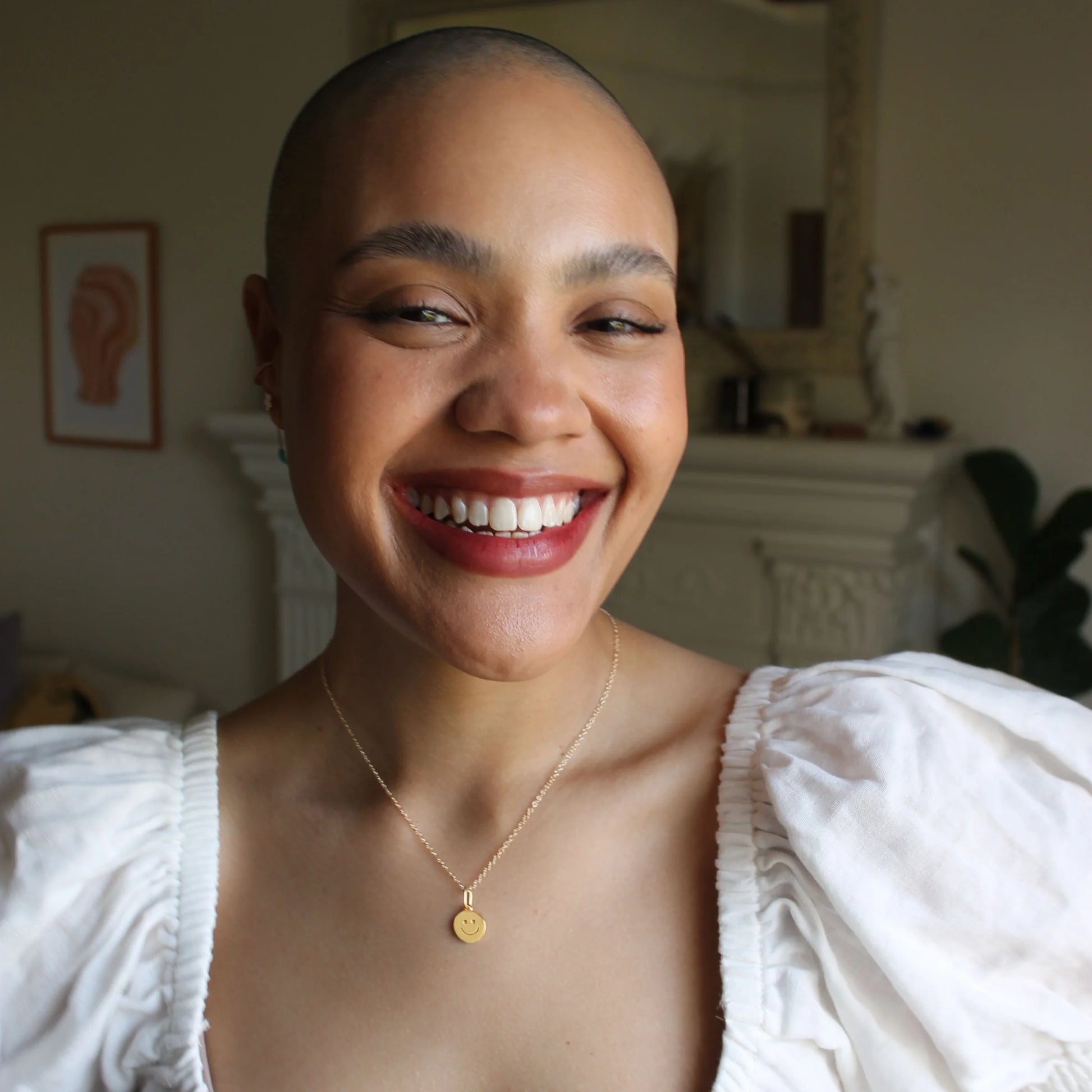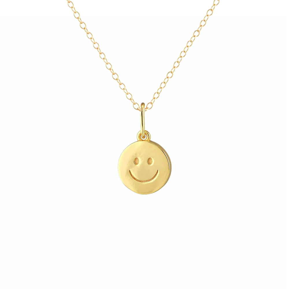 Spread some joy with these Happy Charm. This 12mm diameter charm, in 18K gold vermeil, radiates positivity. Wear this emblem of happiness for a touch of everyday cheer. The elongated connector easily fits over most chains, allowing for easy customization.