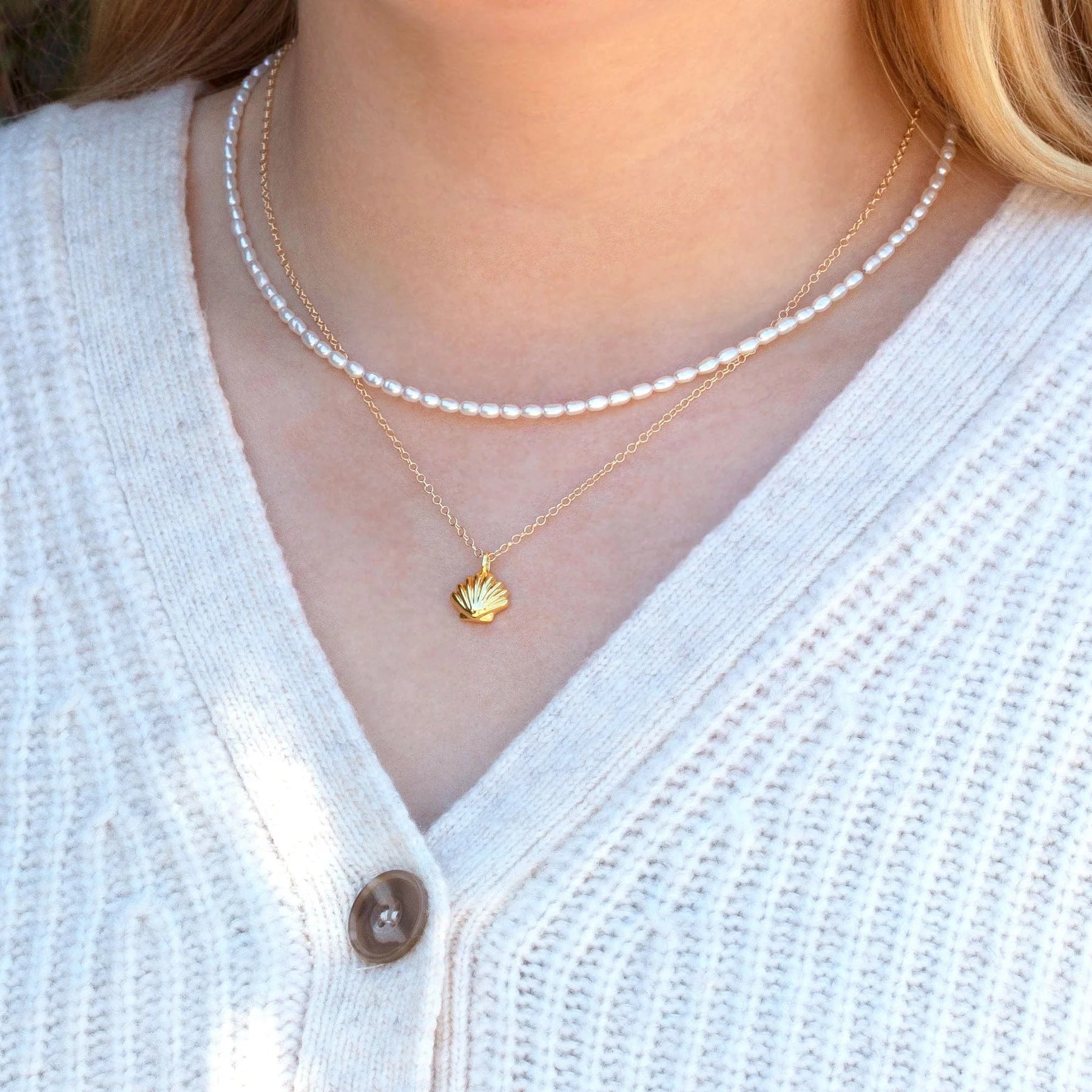Seashell pendant necklace for sale available in 18K gold vermeil (sterling silver plated in 18K gold). Adjustable length 16-18 inches.