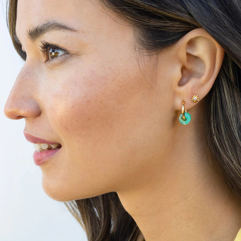 The Sunburst Stud earrings are the perfect earrings for Spring and Summer. The symbolism of the sun represents warmth, energy, and positivity. Wearing the sun as jewelry can be a reminder to embrace these qualities and bring them into your everyday life. The cz crystal in the center adds a touch of sparkle and radiance, enhancing the overall symbolism of the sun. These Sunburst studs are versatile and can be worn with a variety of outfits, whether it's a casual daytime look or a more formal evening event. Additionally, the sun is a symbol of growth and renewal, making it a fitting choice for Spring, a season associated with new beginnings and fresh starts.