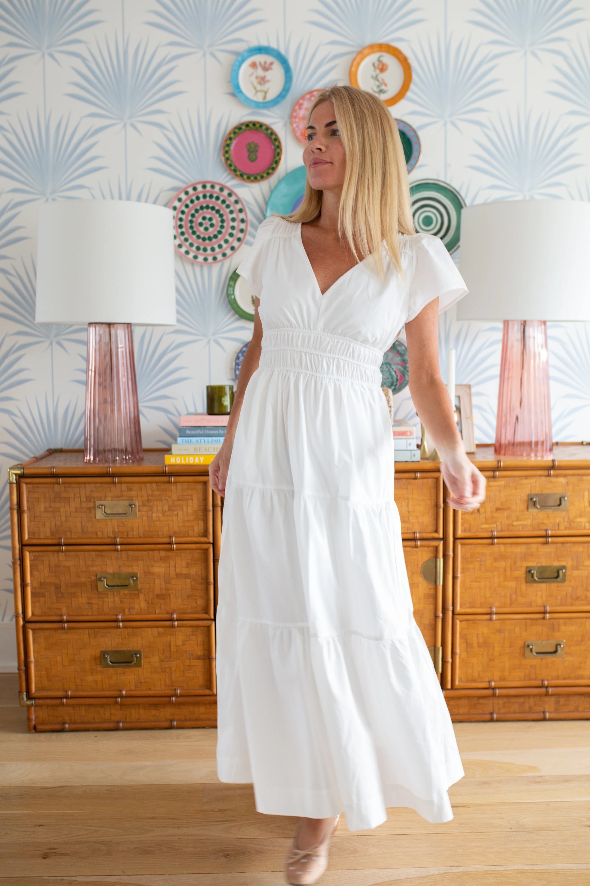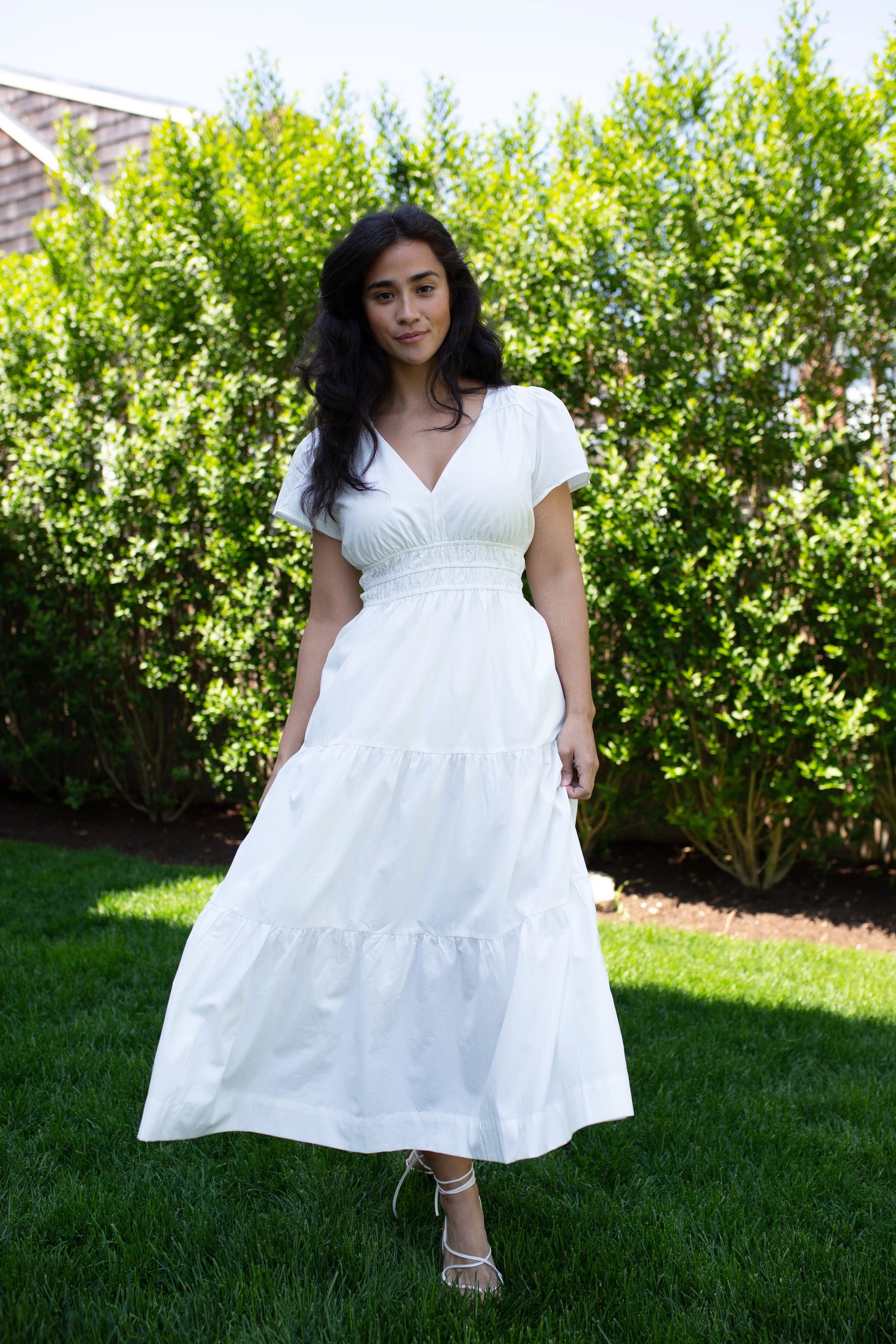 Introducing the Annabelle Dress in white! This is the longer version of The Anna and we are obsessed! Every single person who tried this dress on said they have never felt so beautiful in a long dress. The elastic waist hits at just the right spot to give you the perfect silhouette. You can dress her up with heels or throw on some gladiator sandals or sneakers for a more casual everyday look. If between sizes, we recommend sizing up!