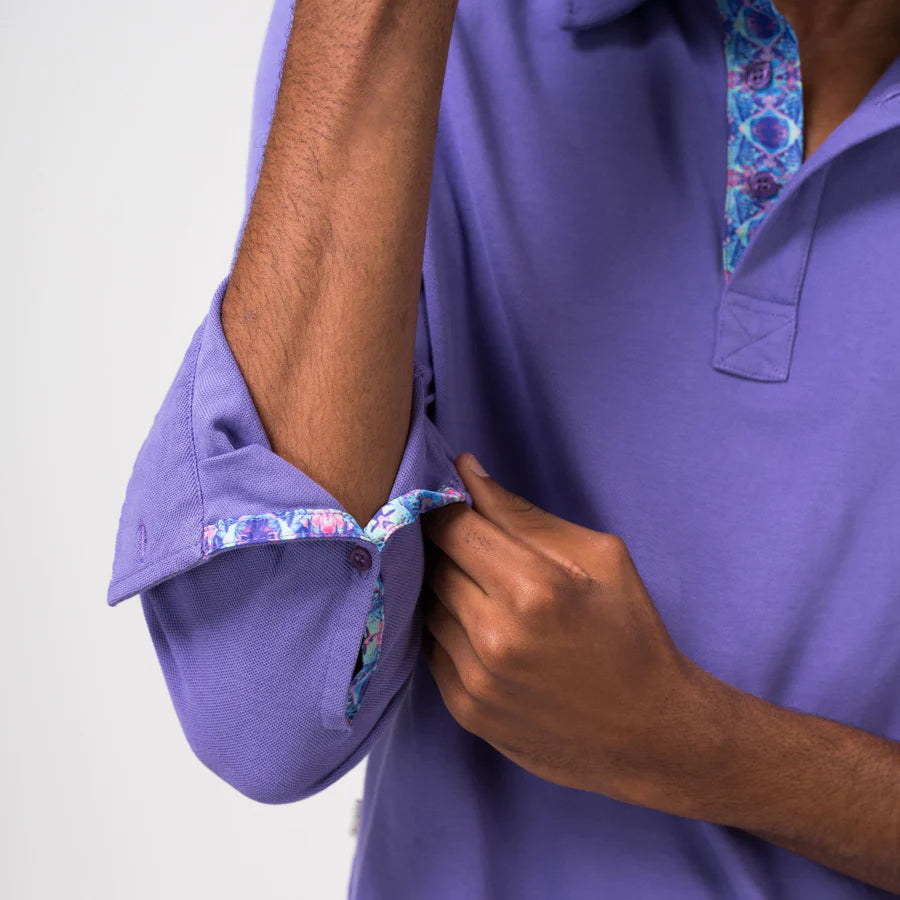 Men's Long Sleeve Cotton Polo - Bermudiana Purple