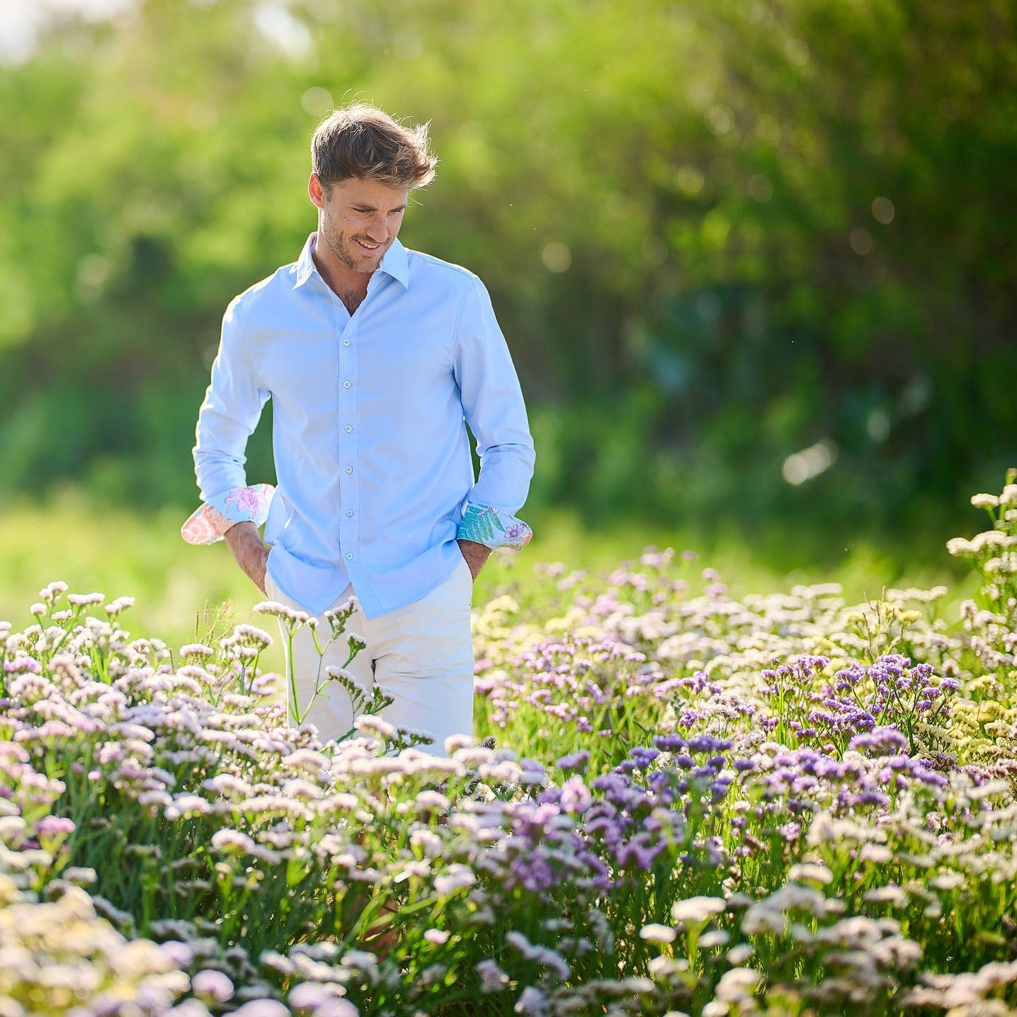 Featuring our custom Spring Island print by Bermudian artist, Avarie Graham, our non iron dress shirts will have you looking your best.