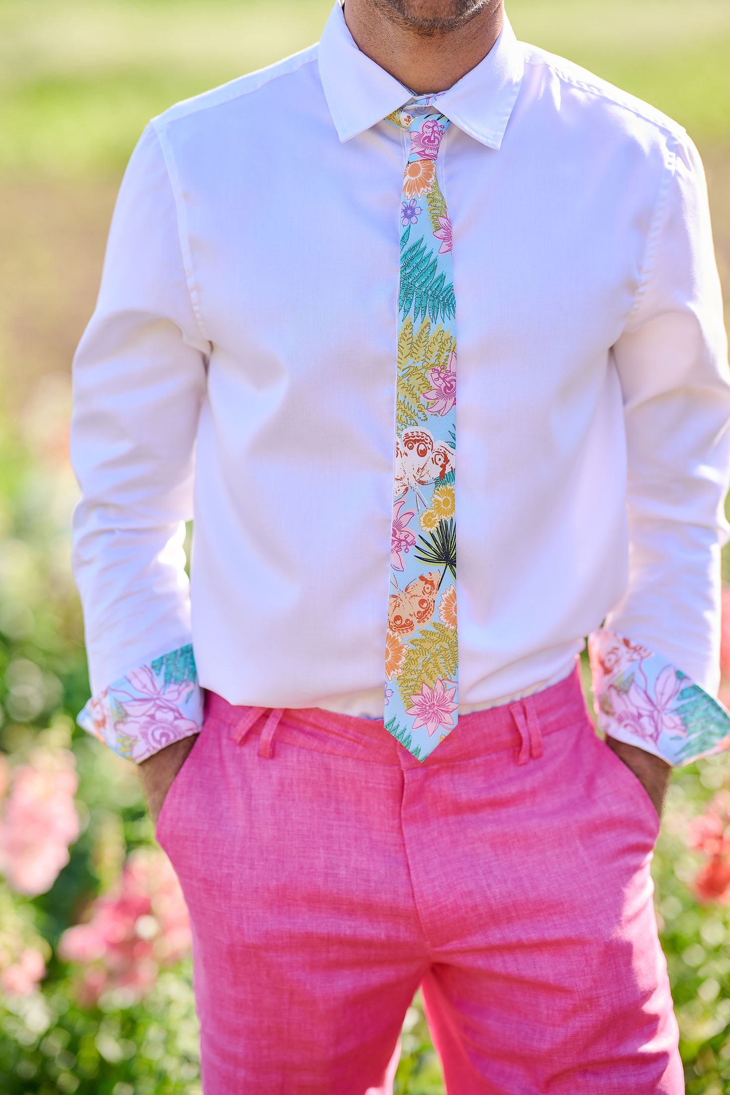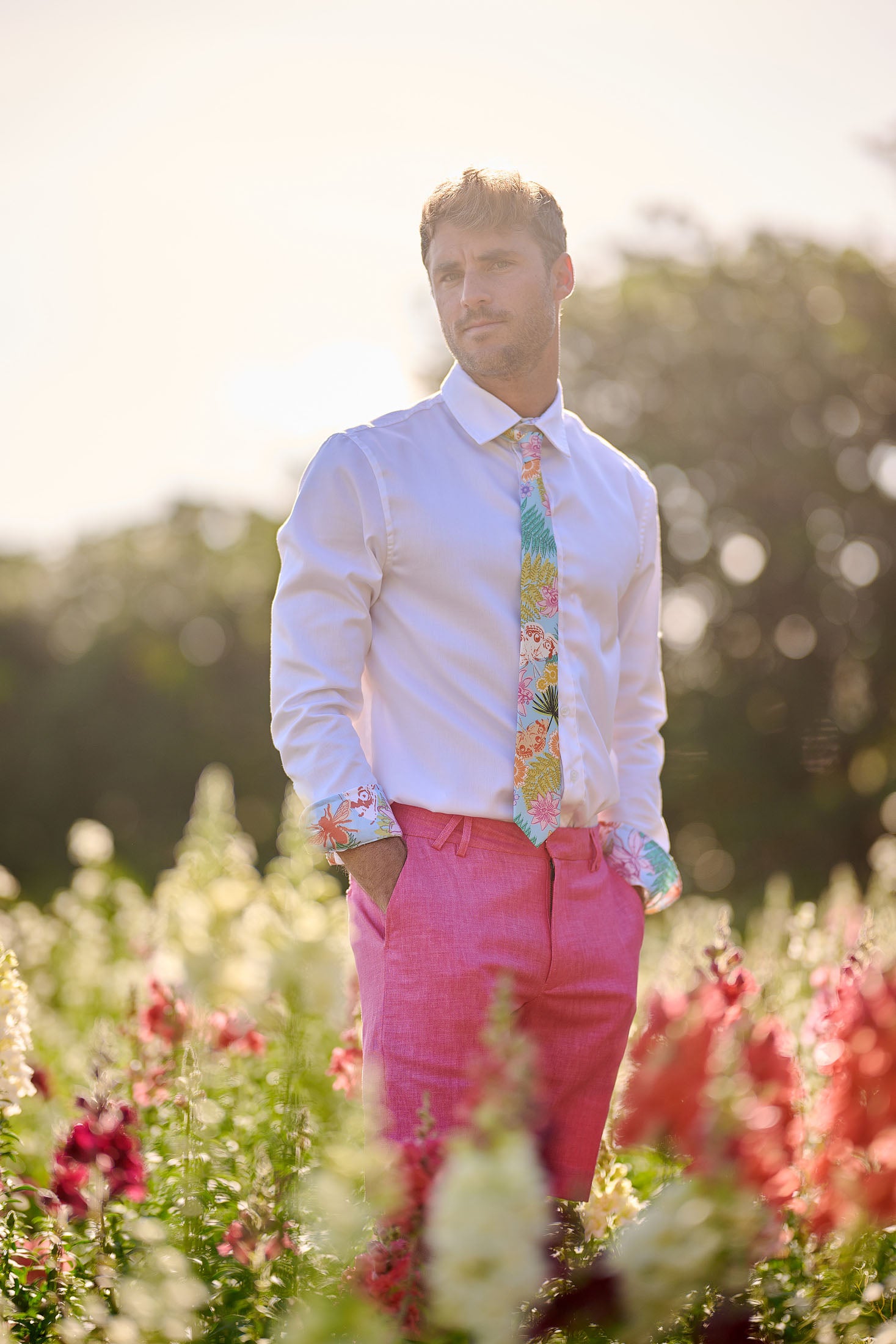Featuring our custom Spring Island print by Bermudian artist, Avarie Graham, our non iron dress shirts will have you looking your best.