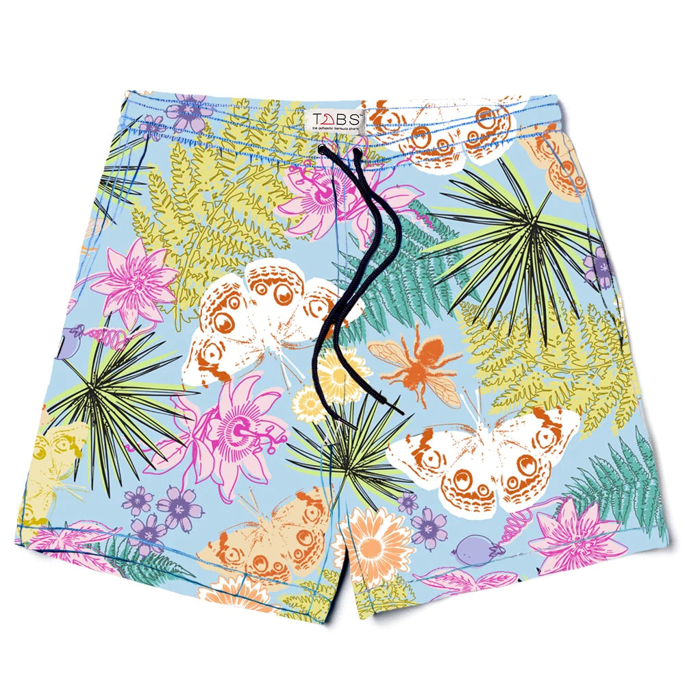 Featuring, Spring Island, a custom print by graphic designer, Avarie Graham, these swim trunks boast refreshing shades of green and calming yellow with hints of pink and pops of magenta.