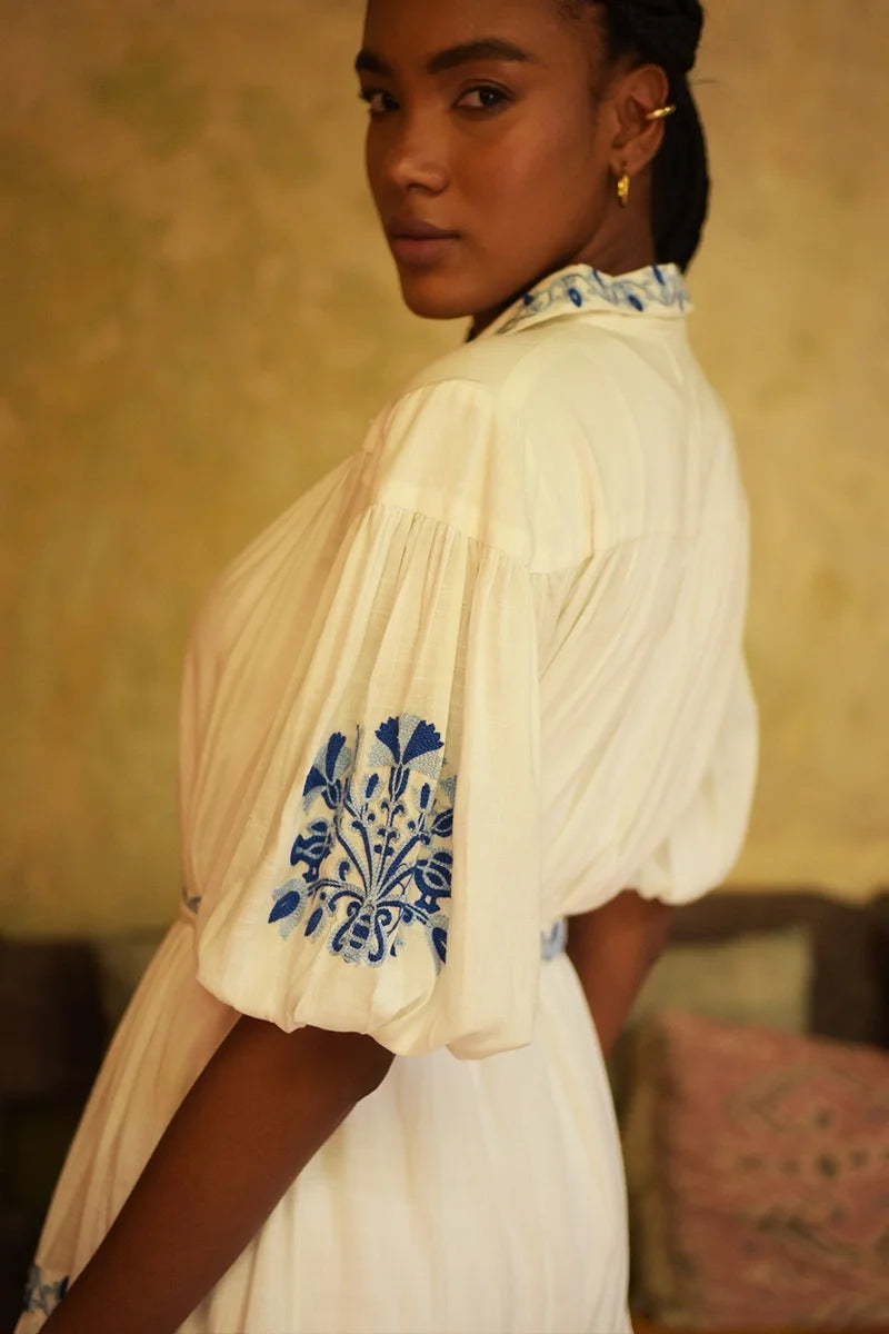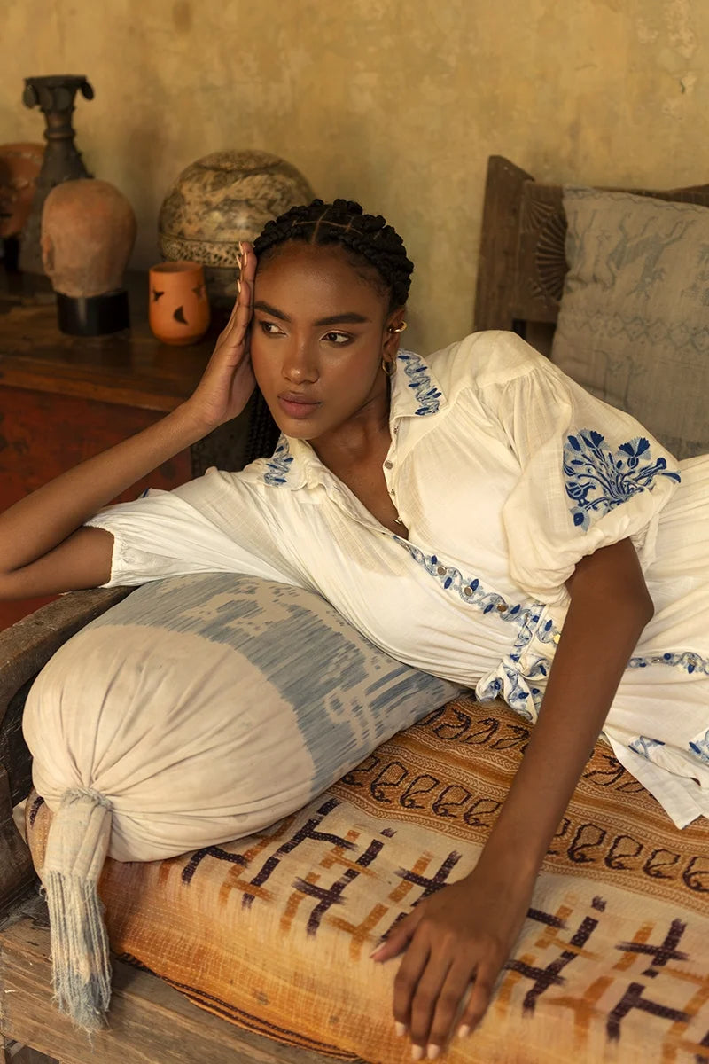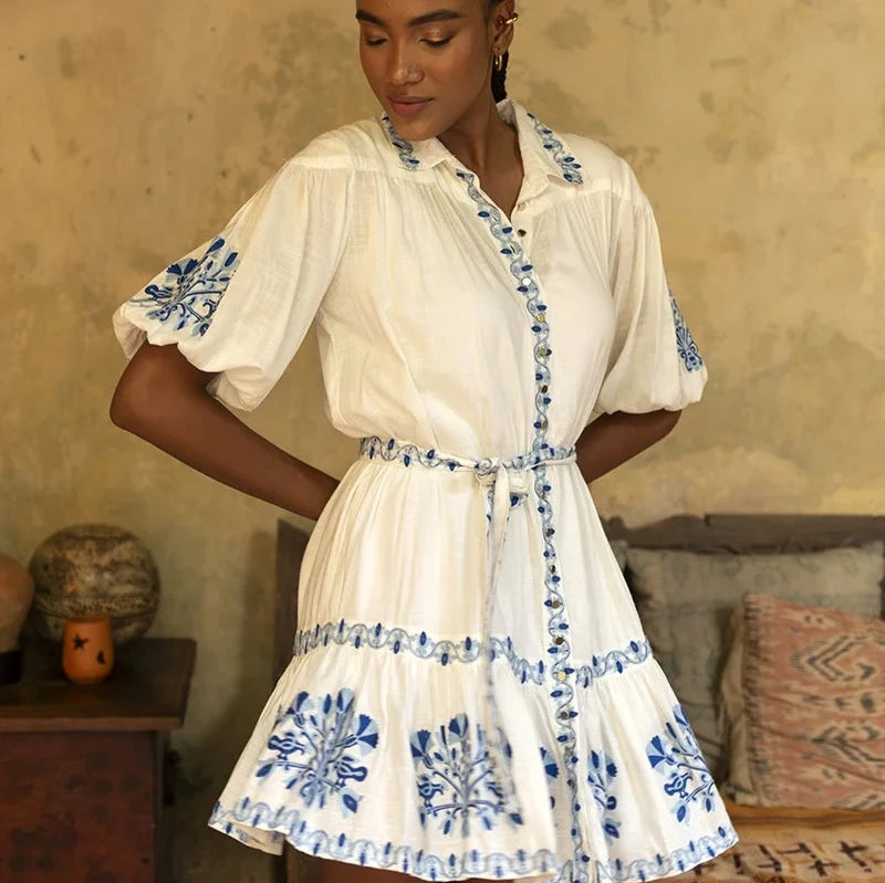The Alessia short dress is much more than just garment, it's an invitation to escape. This women's short dress draws inspiration from the bohemian spirit to transport you on a trip for the duration of an outing. Combining grace and femininity, it is adorned with delicate embroideries that enchant the eye.