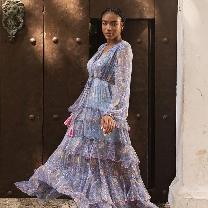 The Emilia long dress for women embodies bohemian charm with unparalleled fluidity, making it perfect for the free and independent woman who likes to travel in style. Made in soothing tones, this bohemian long dress brings a gentle touch of romance to any wardrobe.