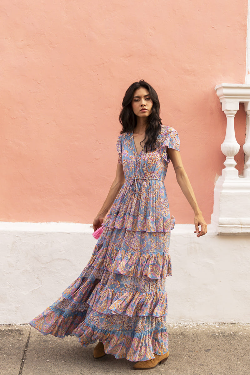 Every detail of this long dress is thought of to highlight your natural charm. Be ready to illuminate every room you enter with the elegant Anakarina Long Dress, a must-have in every chic bohemian wardrobe.