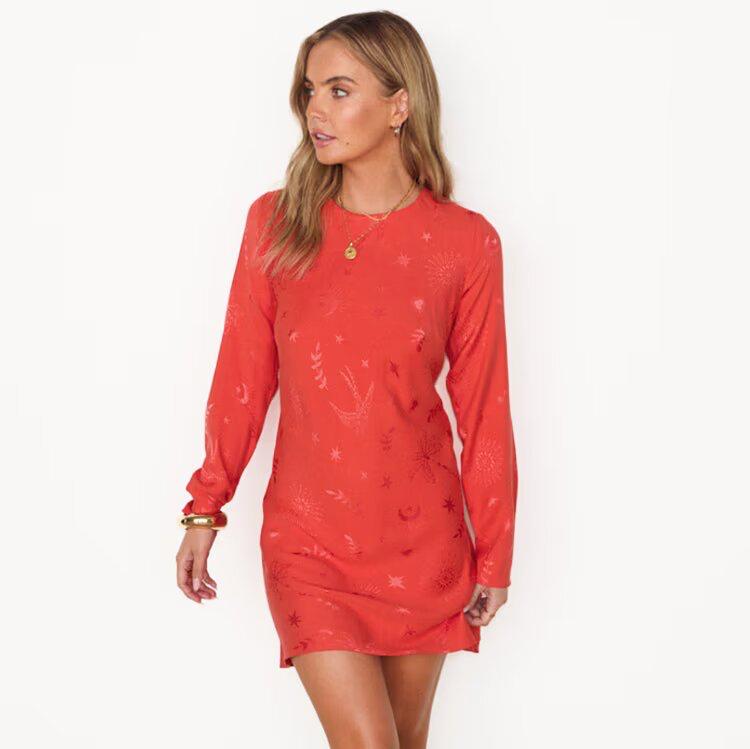 In a bright and bold red this swallow design is a more subtle option of print, but still has that head turning NFD edge. A sophisticated with a hint of sexy option for dinner parties, and so gorgeous for wedding guest dressing.