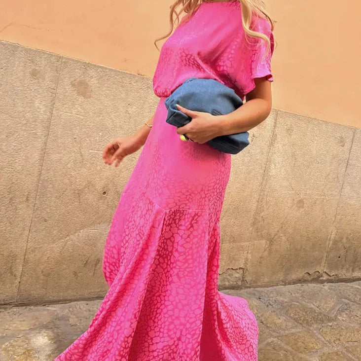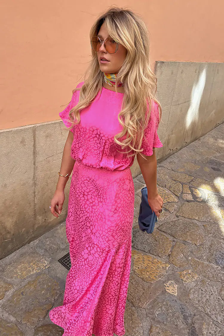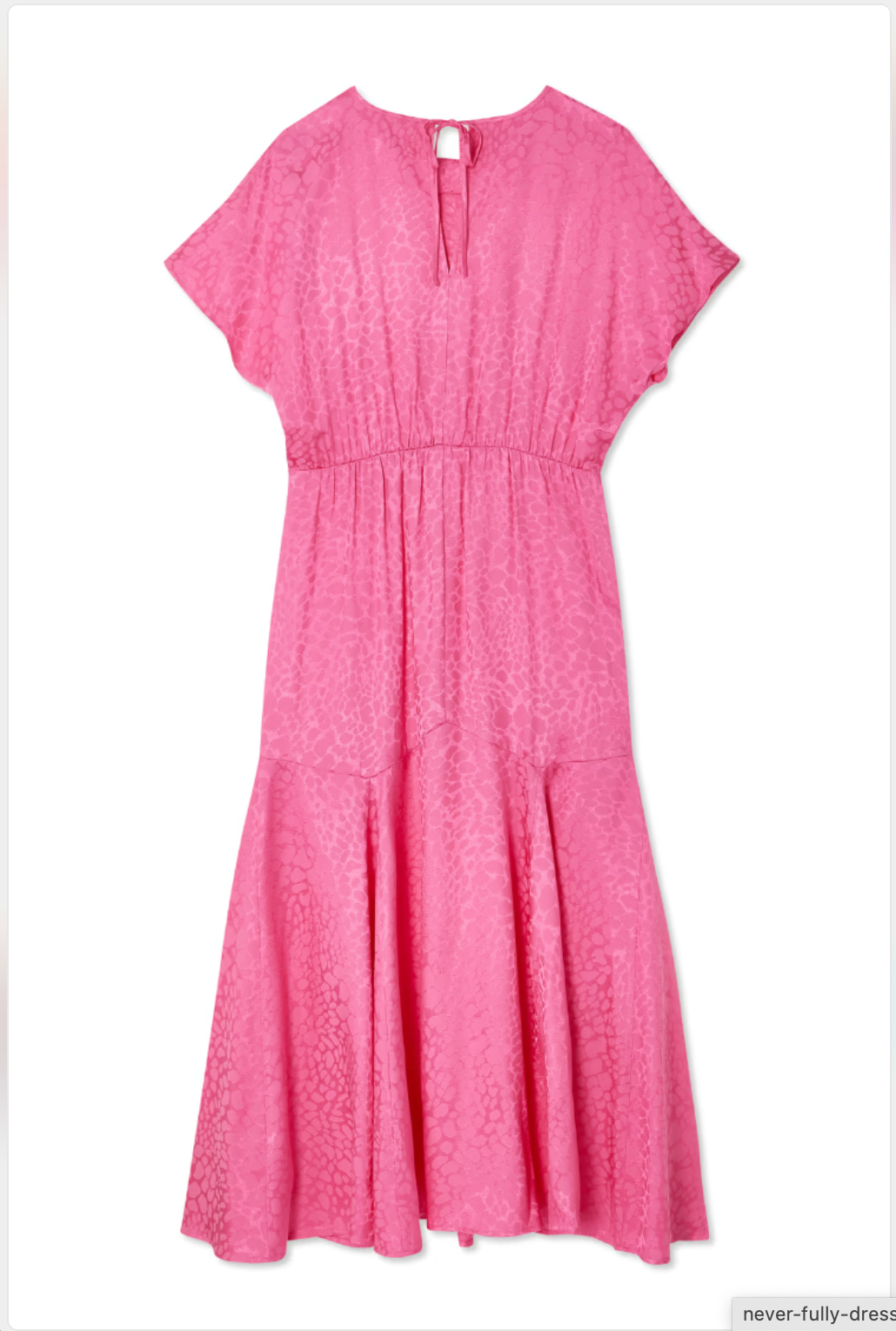 This animal jacquard is a more subtle option than a print, but still has that bold, head turning NFD edge. A sophisticated option for office or dinner parties, and so gorgeous for wedding guest dressing. The silhouette feels one of a kind, with a cap sleeve and more volume on top, and a floaty A-line skirt.