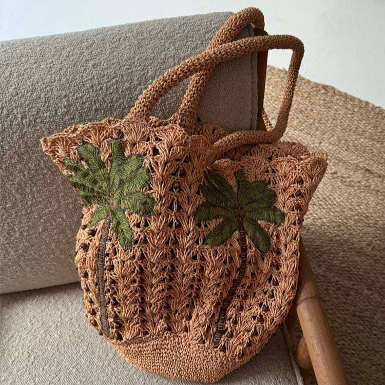 Fully crocheted bag embroidered with NFD iconic palm motifs and a tight knit shoulder strap, adding an extra touch of texture. Added to one of NFD maxi dresses or paired with a co-ord, it is a great beach day accessory.