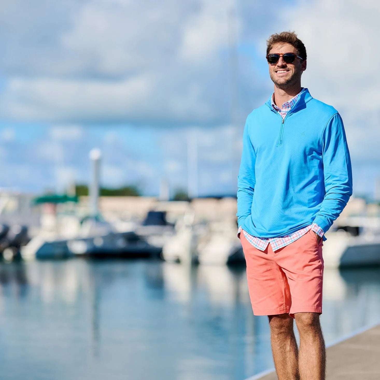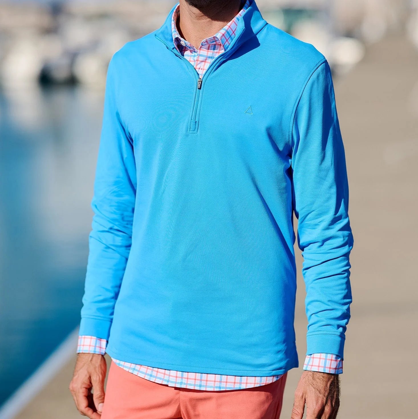 Our first quarter-zip pullover boasts lightweight and wicking properties while the impossibly soft fleece inner-lining gives you an added layer of warmth whether your in the air-conditioned office, on the course, or anywhere in between.